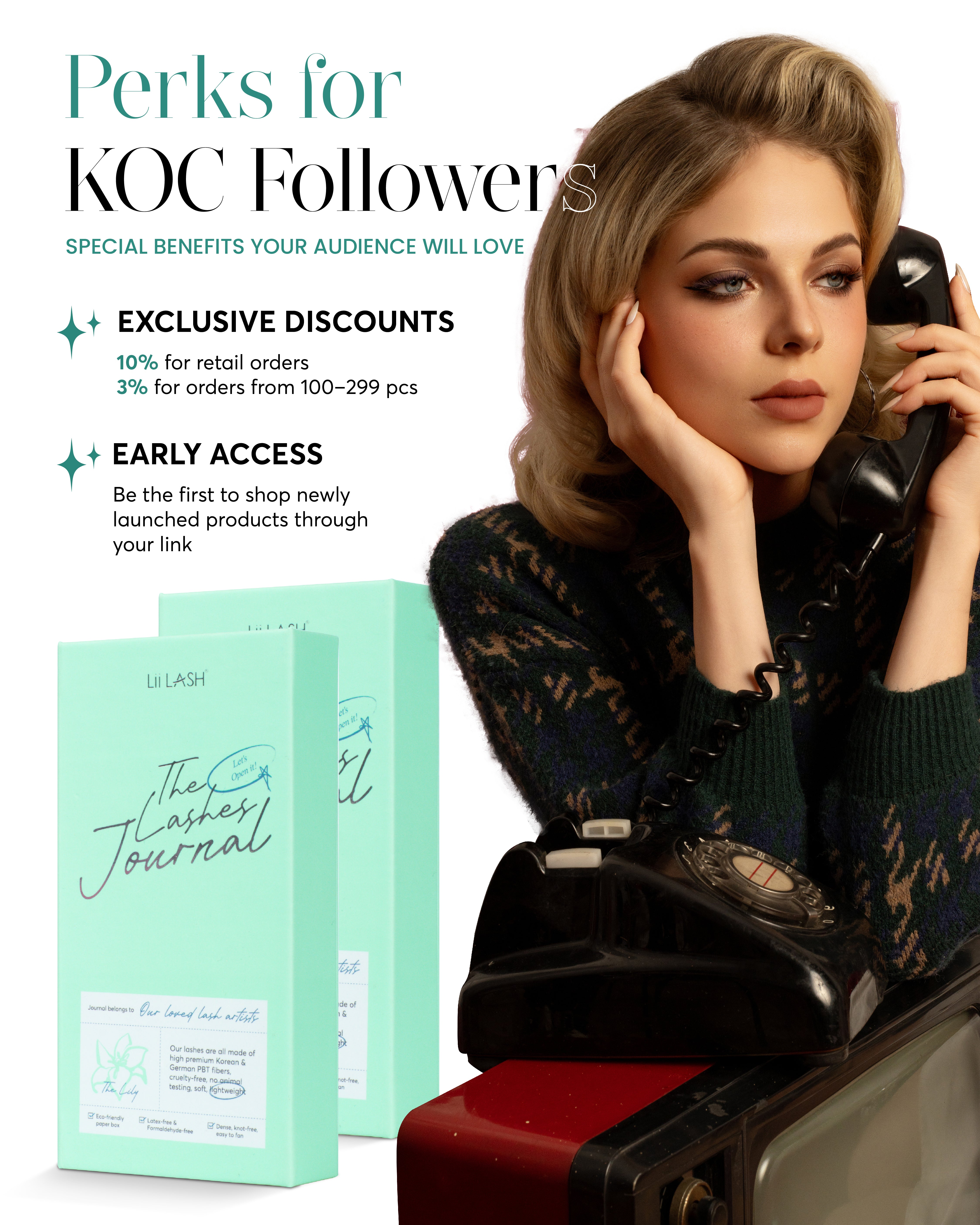 By becoming our KOC, you’ll receive complimentary lash products and lash sets, because we believe you deserve to experience our quality without limits. More than that, your content has the power to shape trends, influence thousands, and help us create a more conscious and beautiful lash industry together.